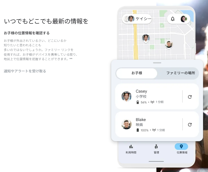 • 位置情報は1台のみ:子どもが複数デバイスを使う場合、取得できる位置情報は1台分のみです